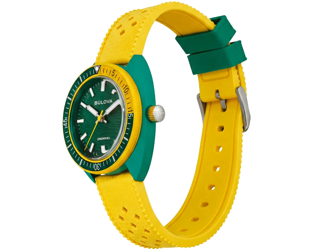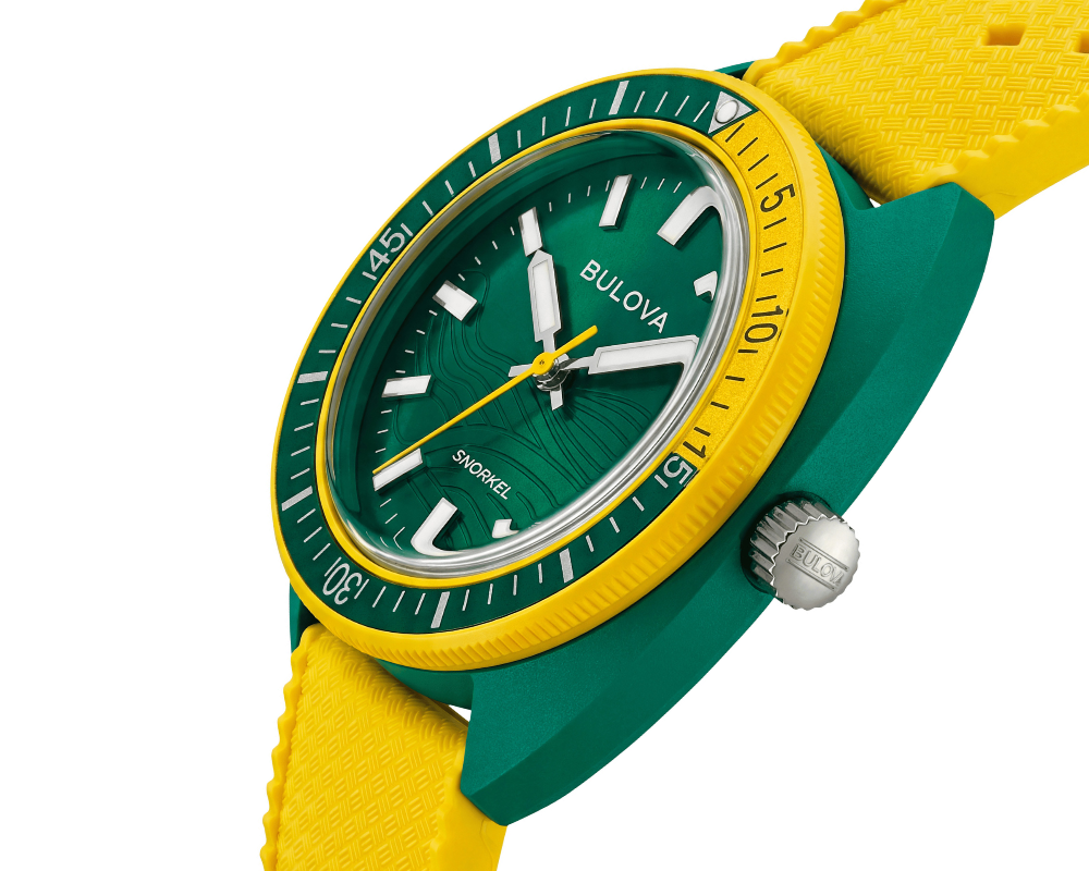 A Bulova, tradicional marca norte-americana com mais de 150 anos de história na relojoaria, apresenta no Brasil o Snorkel Edição Especial 2026 (98F470N) — um modelo que combina design contemporâneo, inovação em materiais e uma homenagem às cores que simbolizam o orgulho nacional.