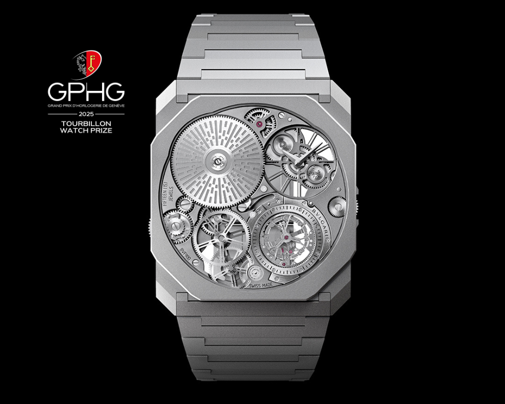 A Bvlgari mais uma vez brilhou no Grand Prix d’Horlogerie de Genève (GPHG), vencendo na categoria “Turbilhão” com o extraordinário Octo Finissimo Ultra Tourbillon, o relógio com turbilhão mais fino já criado.