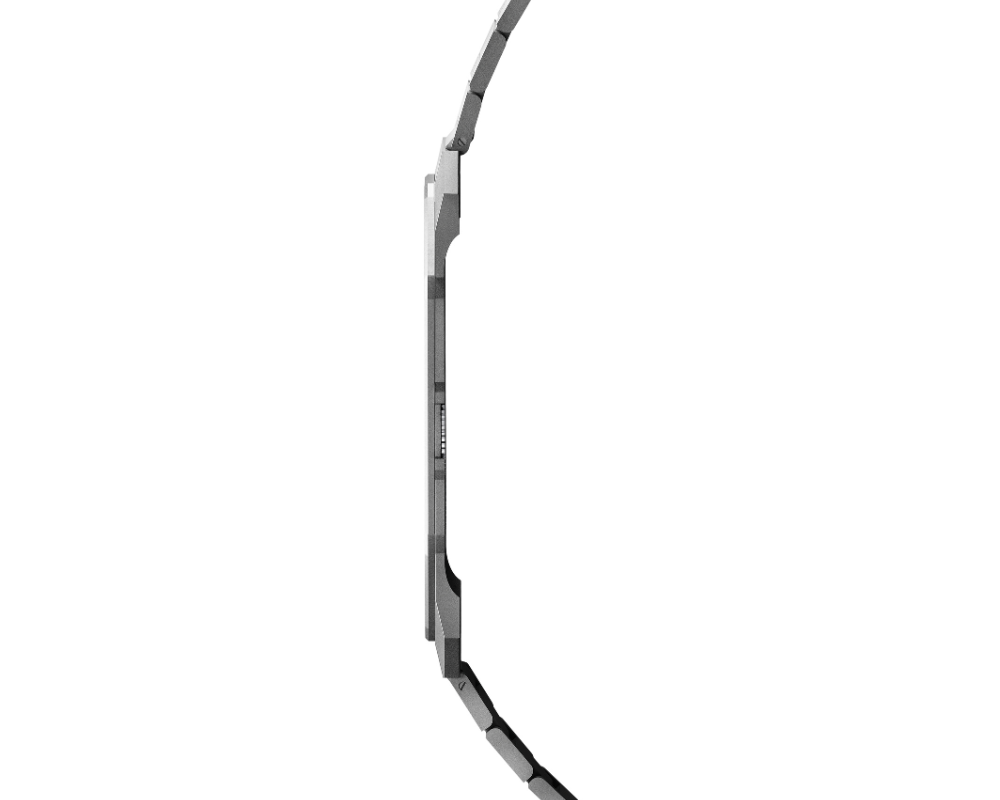 - Pulseira: titânio jateado com fecho dobrável integrado (1,50 mm de espessura)