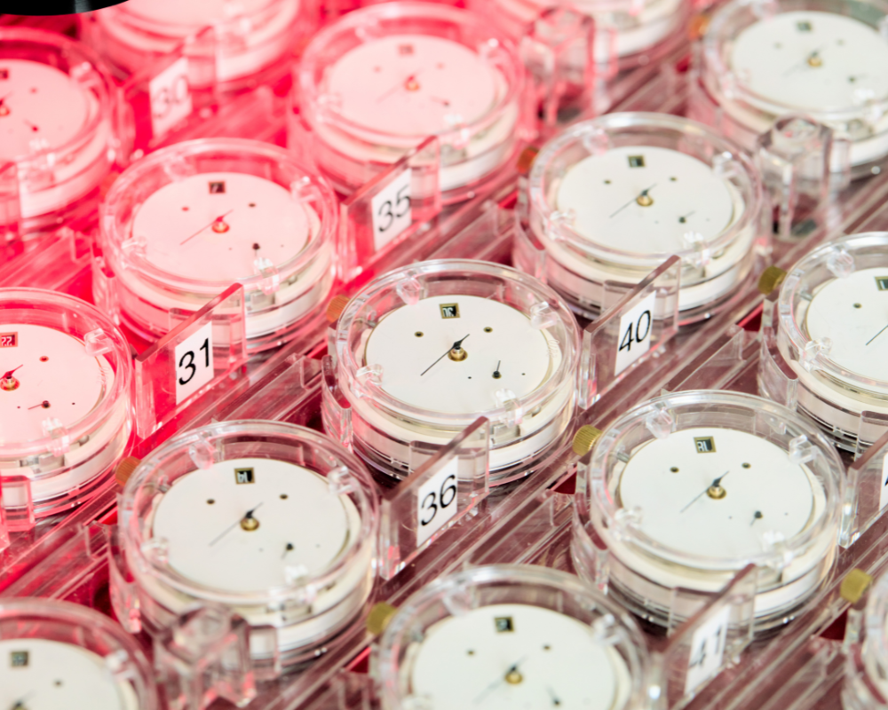 Durante 15 dias, os movimentos são testados conforme os sete critérios da norma ISO 3159. Após aprovação, retornam à manufatura para o encasamento.