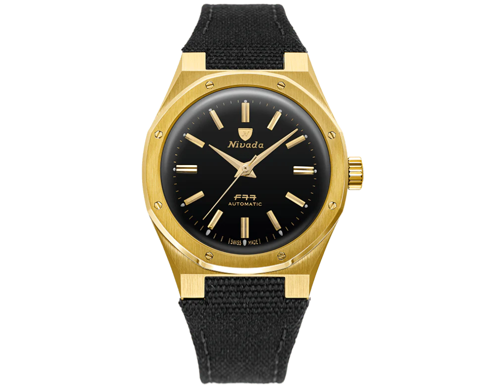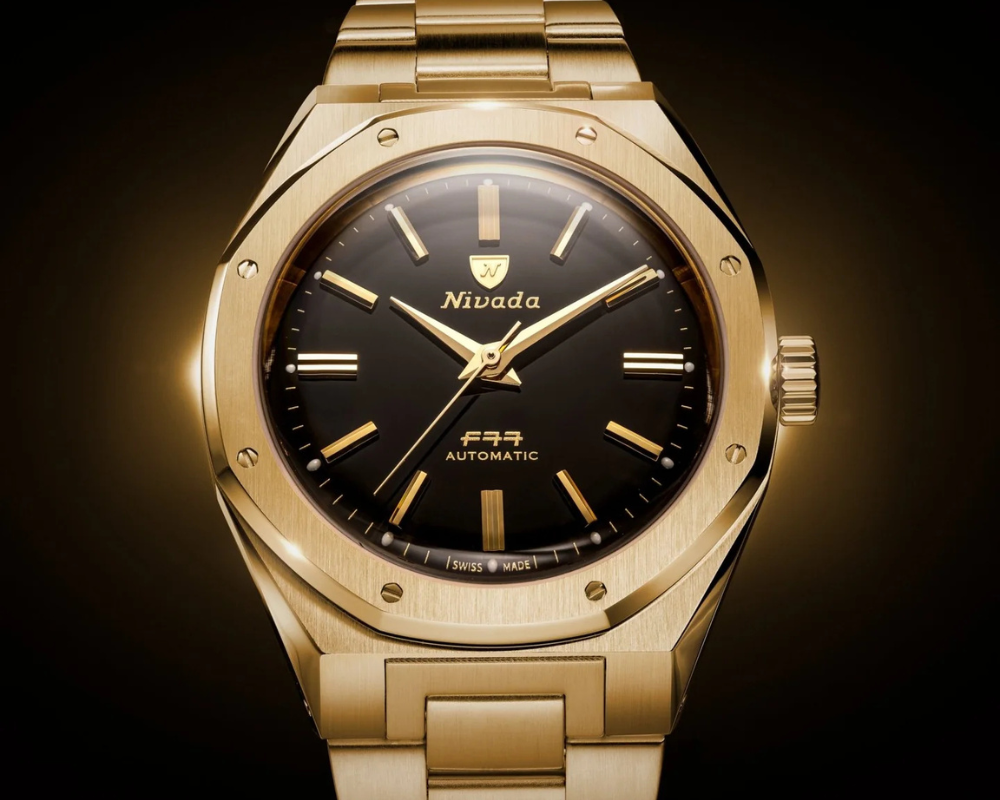 O F77 Mark II Gold é onde o carisma vintage encontra a precisão moderna. Inspirado na era dourada dos relógios esportivos integrados, esta edição reinventa o clássico de 1977 da Nivada Grenchen com um toque ousado: uma caixa banhada em ouro amarelo 18K combinada com um mostrador de ônix preto natural. O resultado? Uma presença no pulso que transmite, ao mesmo tempo, um ar retrô e surpreendentemente contemporâneo.