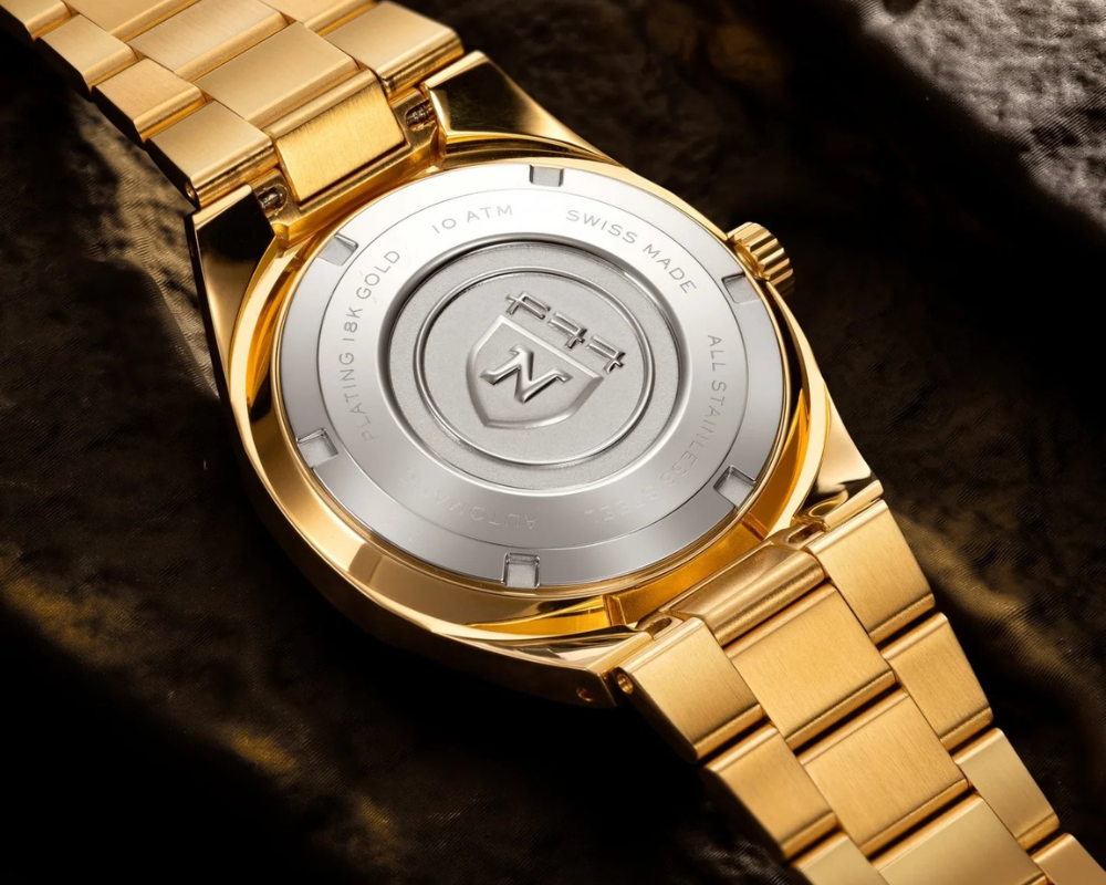 - Material da Caixa: Aço inoxidável 316L com revestimento IP na cor dourada