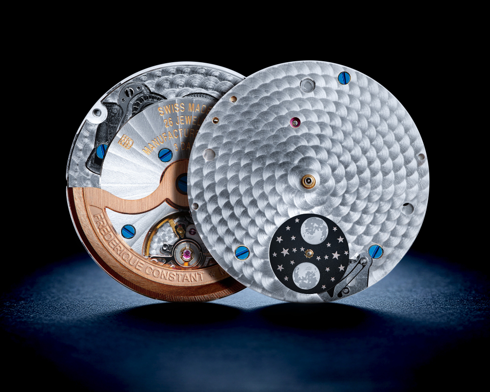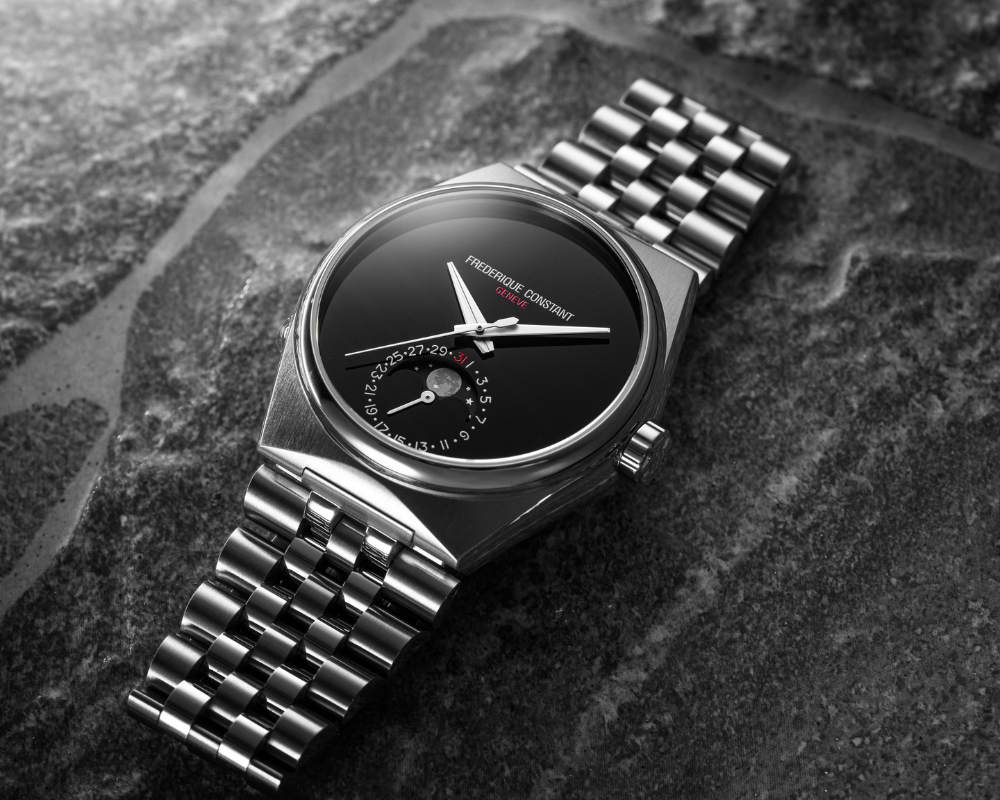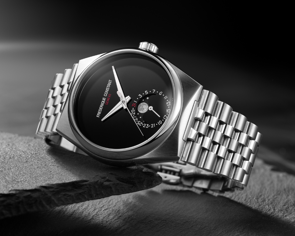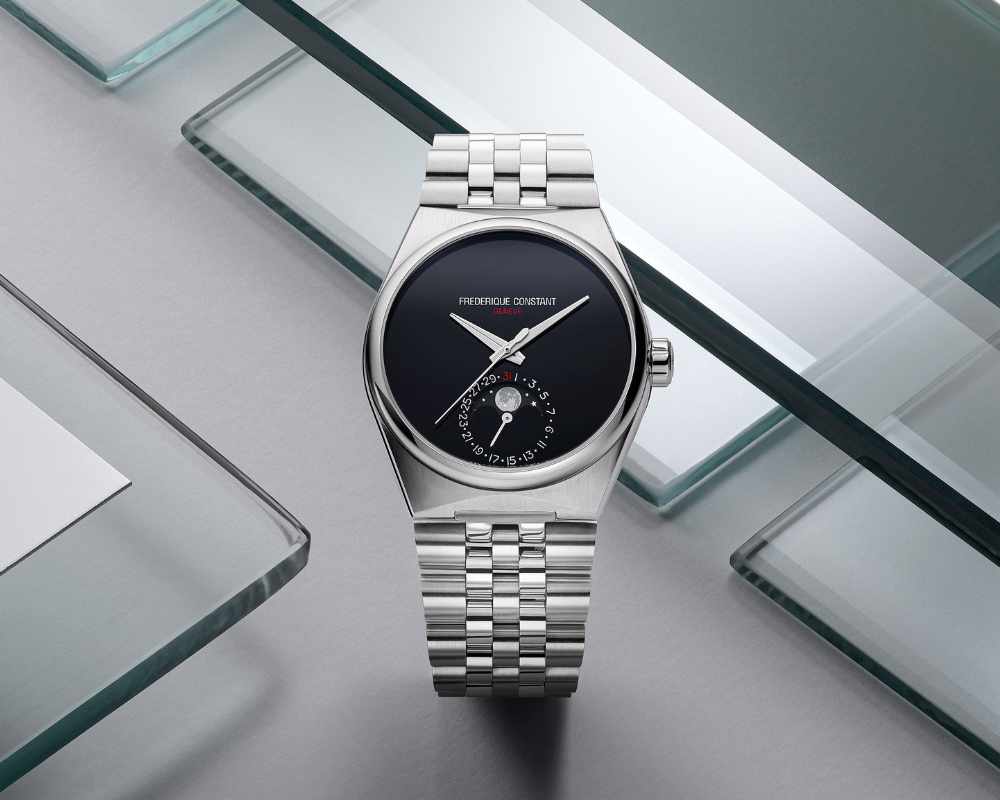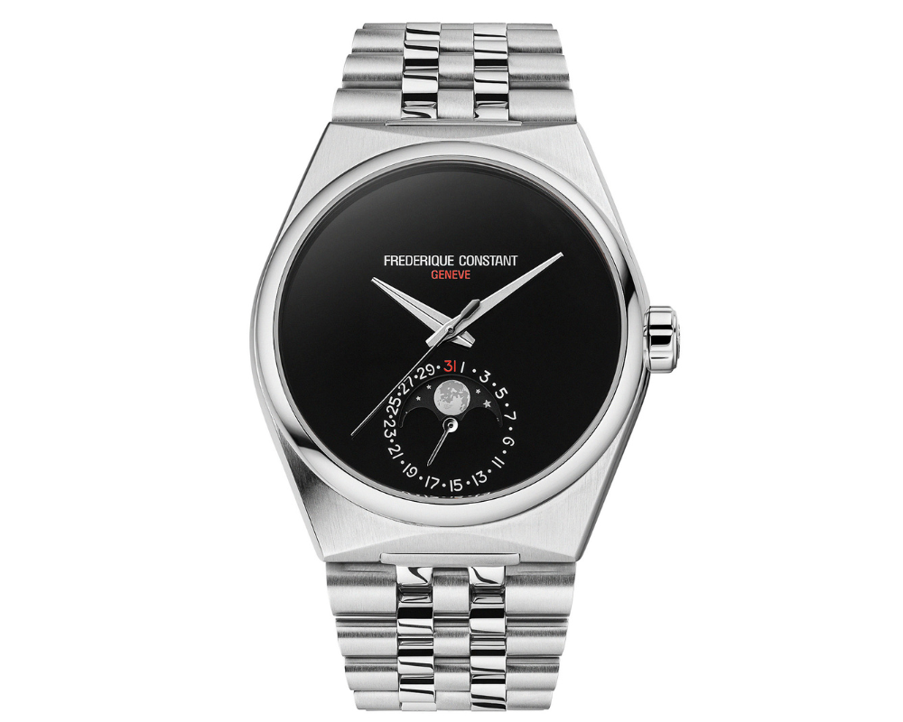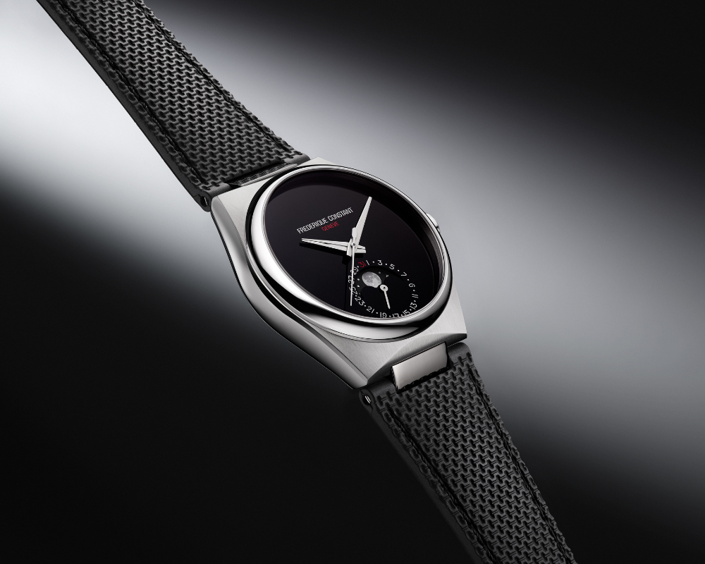 - Primeiro modelo Highlife com complicação Moonphase manufaturada pela própria Frederique Constant.