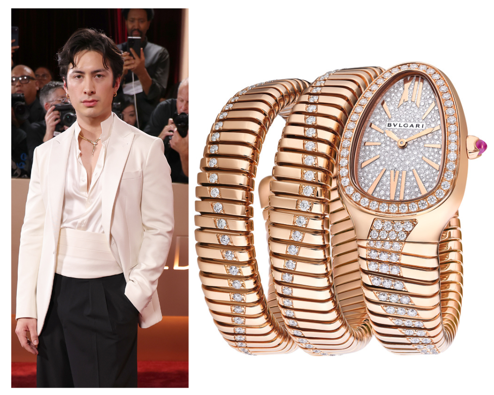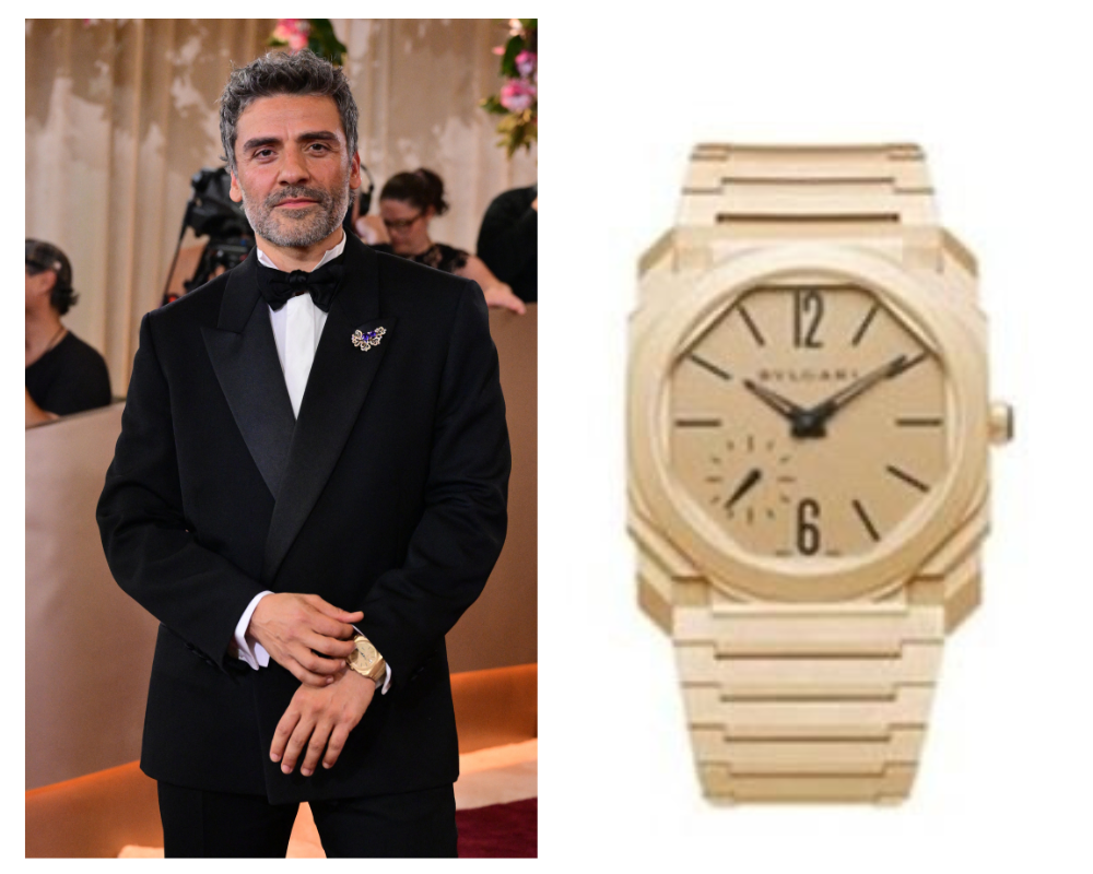 Outro nome de peso a usar Bvlgari foi o ator Oscar Isaac, indicado ao prêmio de Melhor Ator – Drama por sua atuação em Frankenstein. Ele escolheu o luxuoso Octo Finissimo Automatic, conhecido pelo design ultrafino e moderno: