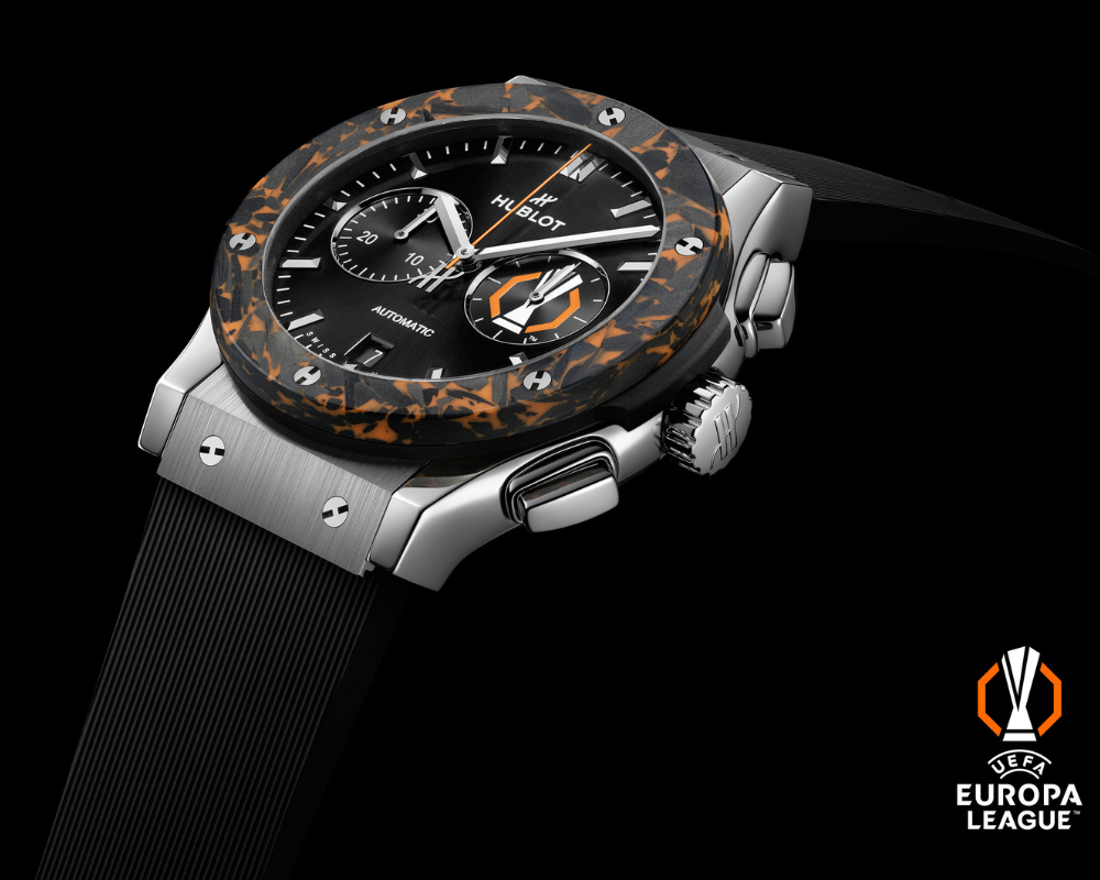No momento, você está visualizando Hublot Lança o Classic Fusion Chronograph UEFA Europa League Titanium Carbon