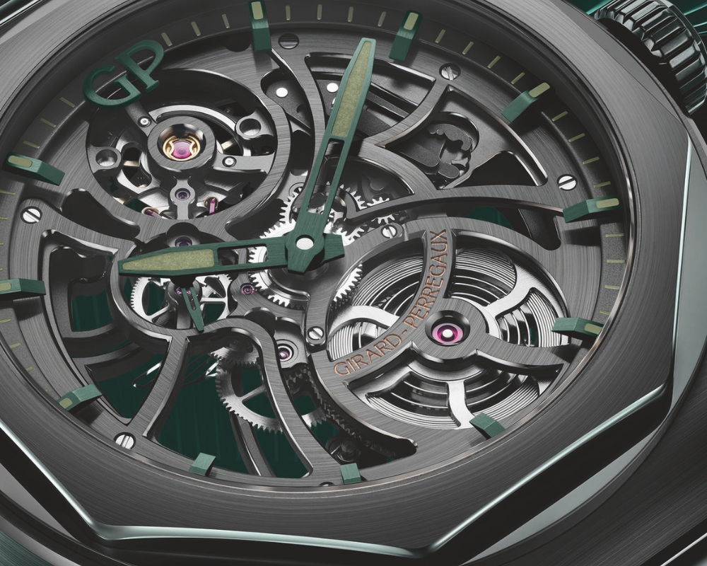 - Rotor em ouro maciço esqueletizado na cor “Racing Green”
