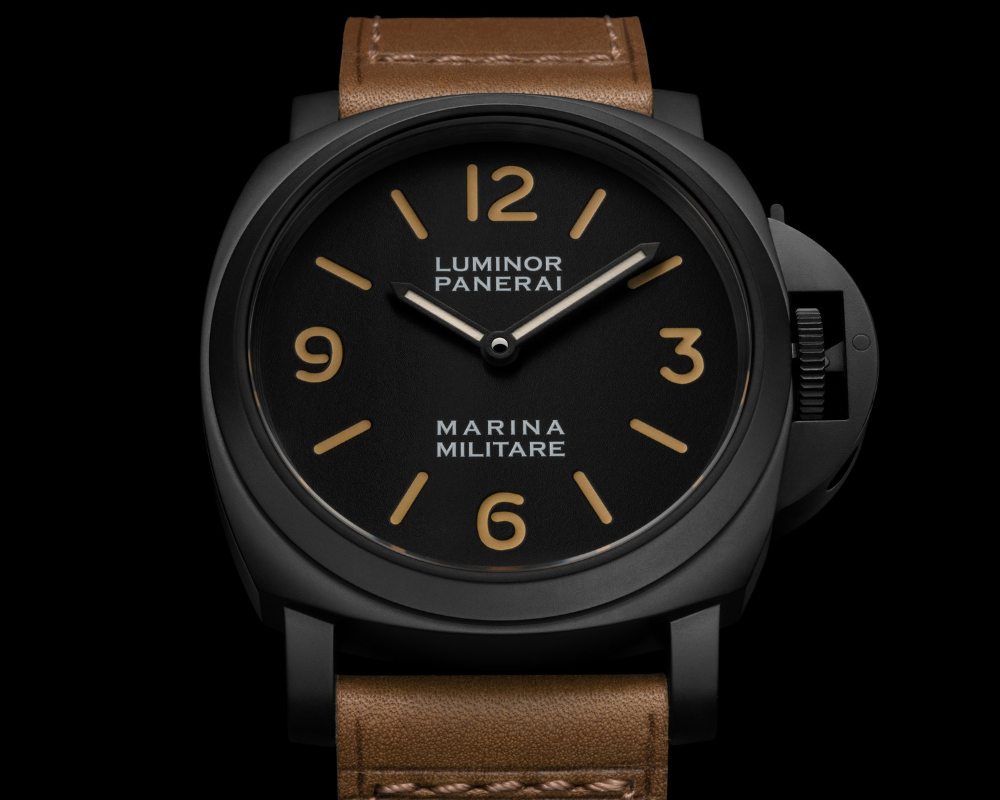 Inspirado no modelo original de 1993, o novo Luminor Marina Militare PAM05218 traz uma caixa de 44 mm em DLC (Carbono Diamante), garantindo resistência, durabilidade e um visual marcante em preto fosco. No mostrador, a clássica inscrição “Marina Militare” homenageia a longa parceria com a Marinha Italiana, com uma tipografia especialmente redesenhada para refletir a estética da época.