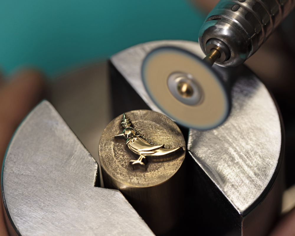 O novo relógio é equipado com o movimento El Primero 400, um dos cronógrafos automáticos mais celebrados do mundo. O mecanismo aparece em uma versão personalizada, com a icônica figura do pássaro do broche Bird on a Rock, esculpido à mão em ouro amarelo 18k e aplicado no rotor visível através do fundo de safira.